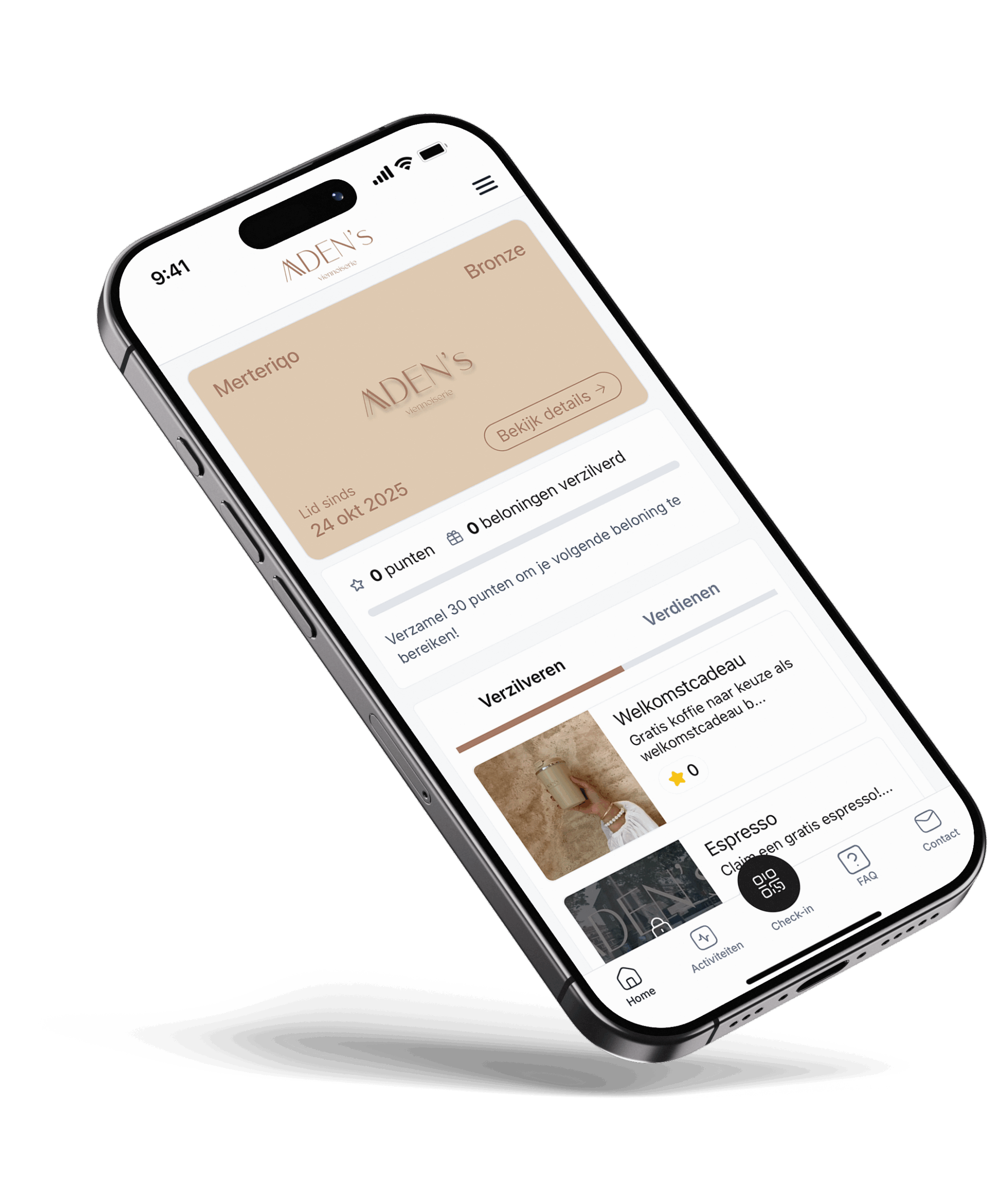 Als dank voor uw loyaliteit introduceren we onze exclusieve app. Spaar voor luxe beloningen en geniet van de kleine extra's die uw bezoek aan Aden's nóg specialer maken. Dit zijn de voordelen die wachten: